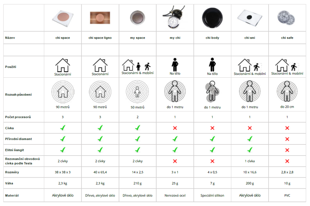 Srovnávací tabulka vám pomůže rozhodnout se i podle dalších parametrů – počtu procesorů, přítomnosti cívky, přírodních materiálů jako diamant nebo šungit, či praktických vlastností, jako je váha a rozměry.